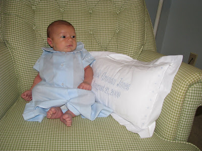 My how time flies! I cannot believe that J is already one month old. He is a darling baby although already very spoiled! He wants to be held a lot, but that is mostly his Mommy's fault because I love to hold him! His brothers are crazy about him and the only trouble we have had is them waking him up by wanting to talk to him and kiss him. He is chunking up a lot and I would not be surprised if he is close to 10 pounds already.